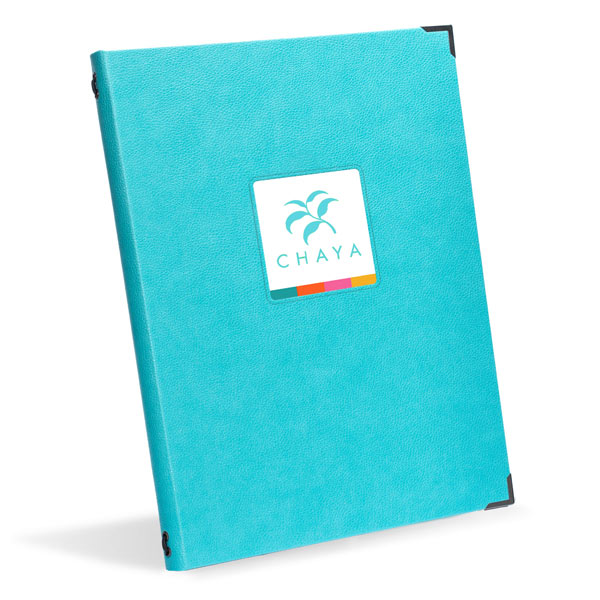 Cada menú se puede personalizar con su logo en la cubierta mediante estampación o termograbado, así como adaptando su interior con diferentes tipos de fijaciones.