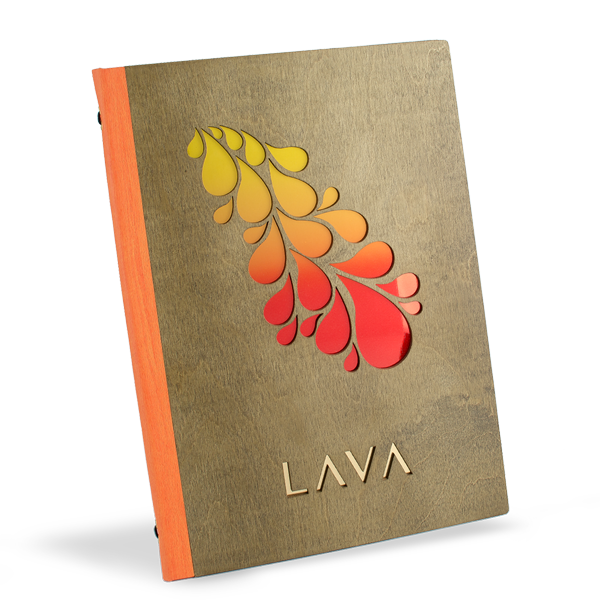 Portamenús de madera únicos con un recorte personalizado e incrustaciones de metal pulido