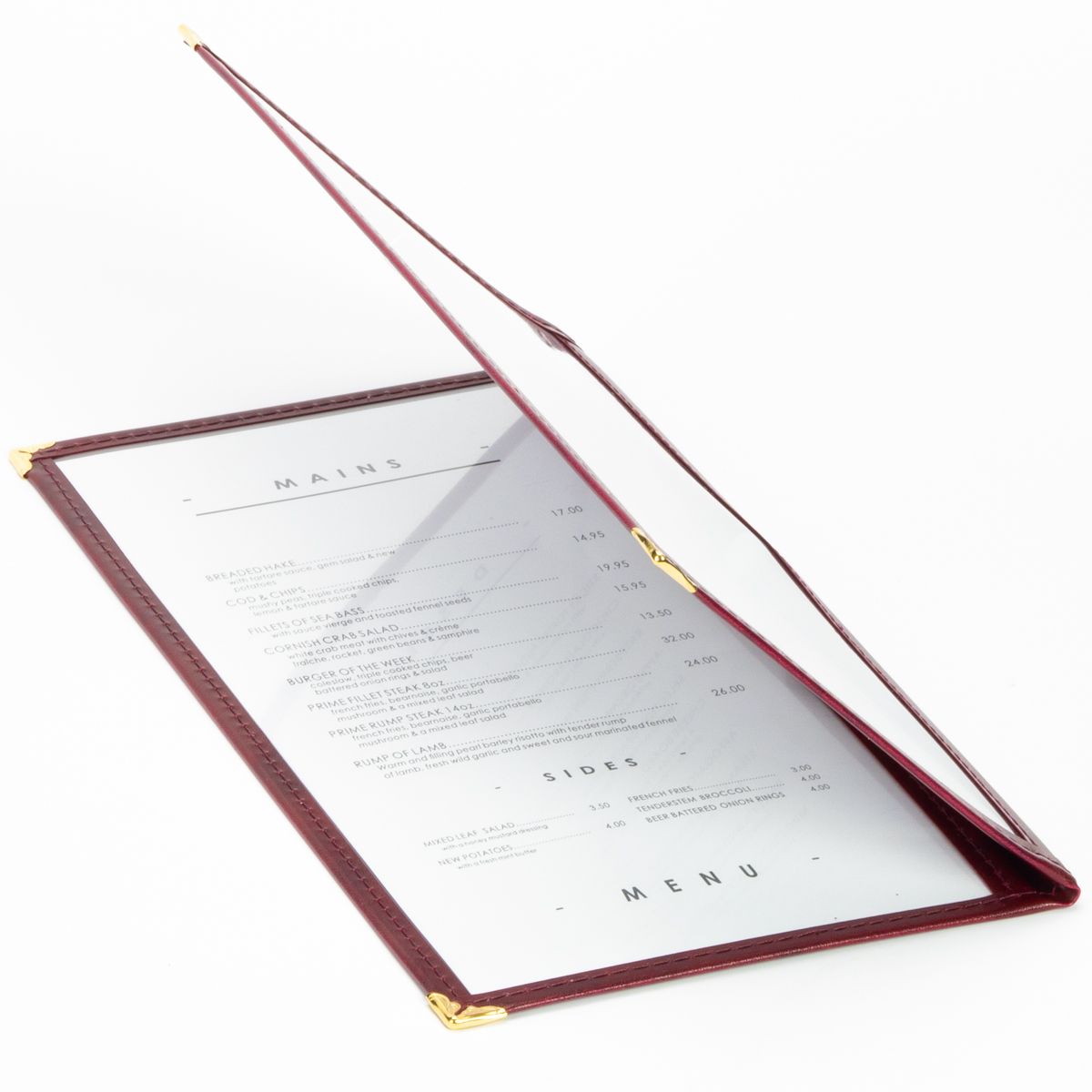 Información sobre la entregaMenús con estilo tradicional americano con fundas de PVC transparente de 300 micrones, sencillos, duraderos, versátiles y económicos. Disponibles una gran variedad de diseños, tamaños y colores, se adaptan fácilmente al estilo de su negocio.