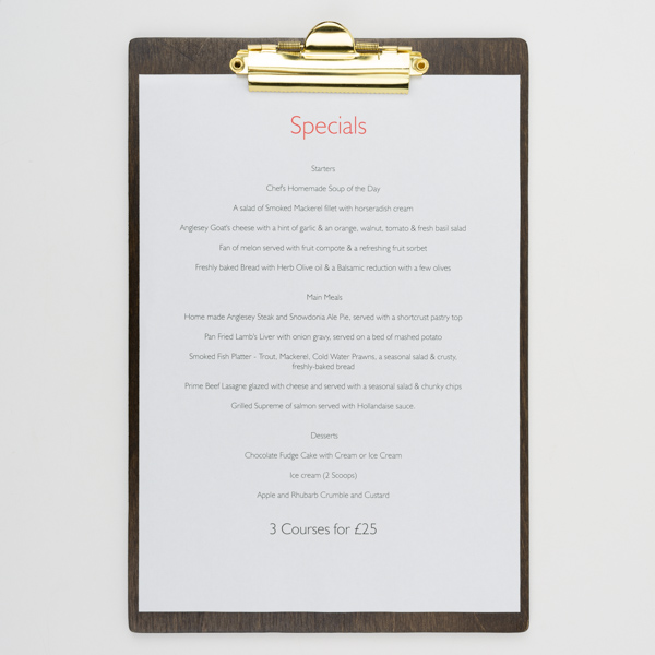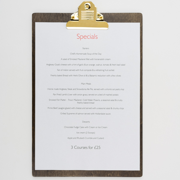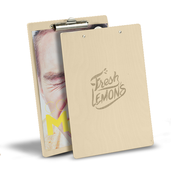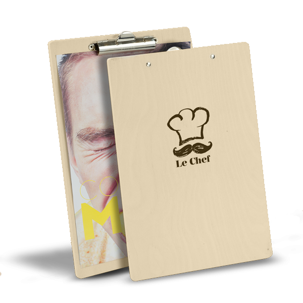 Información sobre la entrega- Tabla de Menu madera con 3 tipos de clip disponibles.