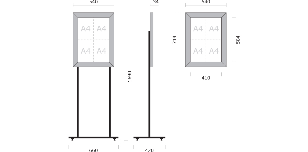 Expositor vertical en madera rústica. Disponible en marrón o negro.
