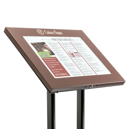 Información sobre la entregaExpositor de menú moderno, llamativo y único muy resistente a los arañazos. Perfil ultra delgado de 25 mm, pantalla LED de bajo voltaje, enchufe a la luz o opción de baterías disponible. Las hojas interiores se pueden cambiar de forma rápida y sencilla, simplemente desbloquearlos y despegarlos.