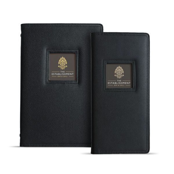 Featuring a soft faux leather that has a textured surface these incredibly popular menus also include a padded cover that makes them very tactile.