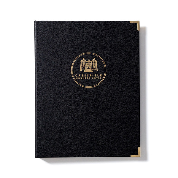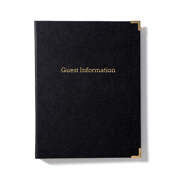 Estas fantásticas carpetas y archivadores de información para huéspedes ofrecen un acabado en piel fácil de limpiar y mantener.