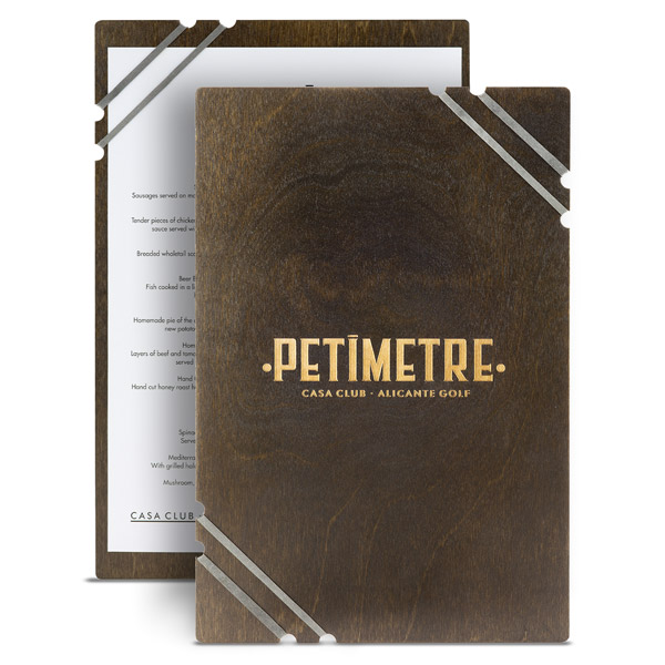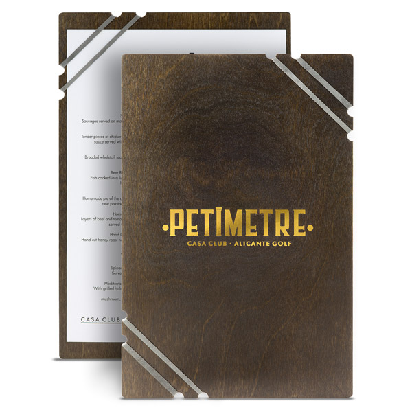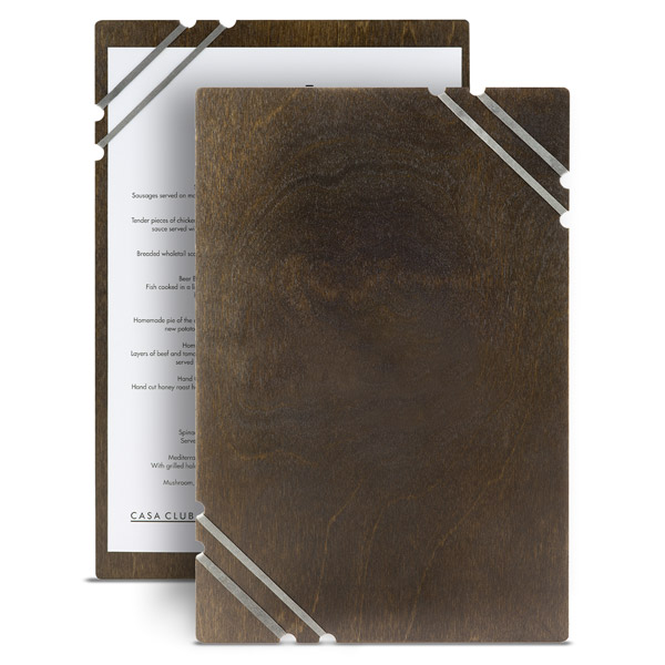 Cartas para restaurante en madera con fijaciones mediante gomas elásticas en las esquinas