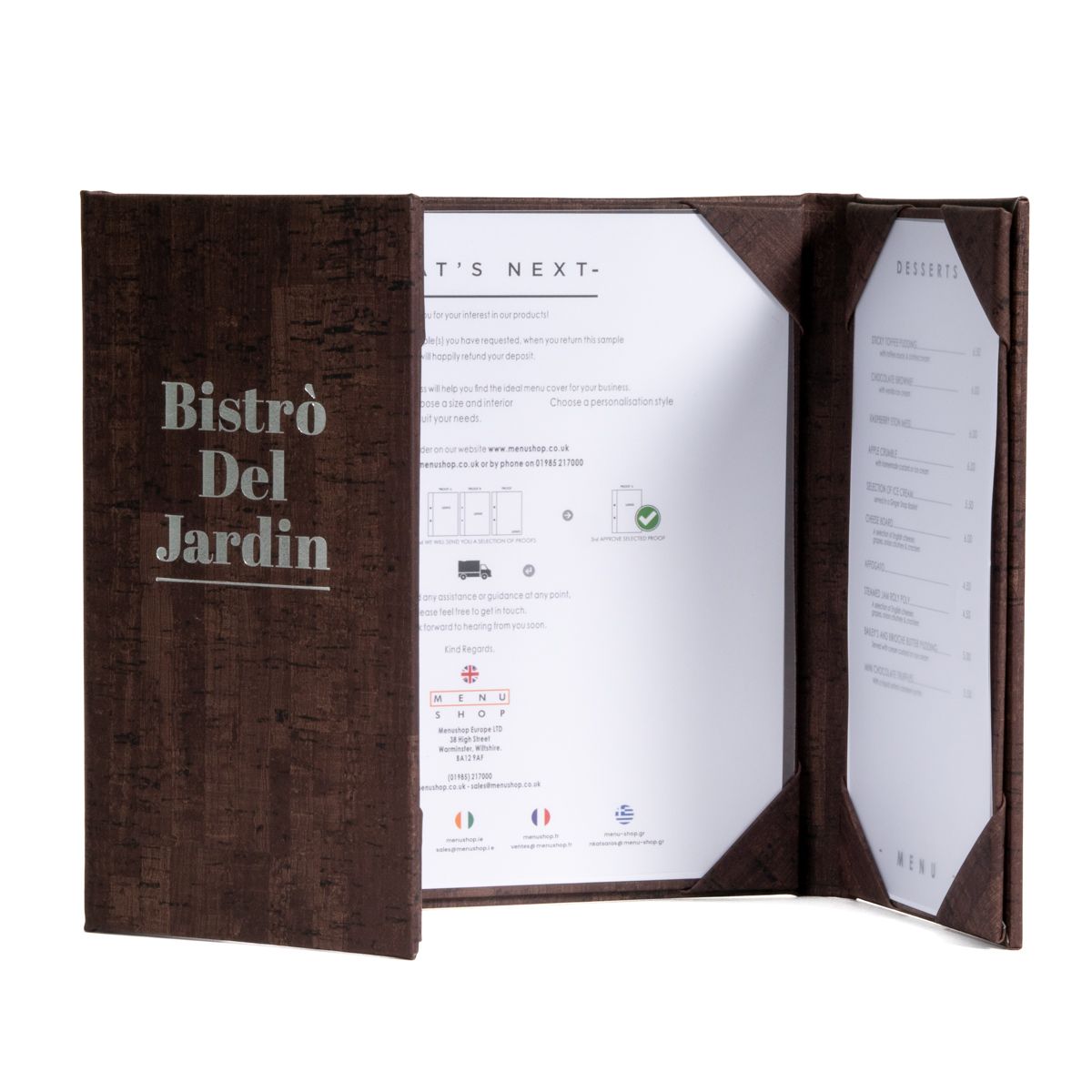 Nuestra gama de portamenús Corcho es perfecta no solo para una presentación de su carta de menú sino además para su carta de vinos y una carta de cocktails con un toque elegante y sofisticado.