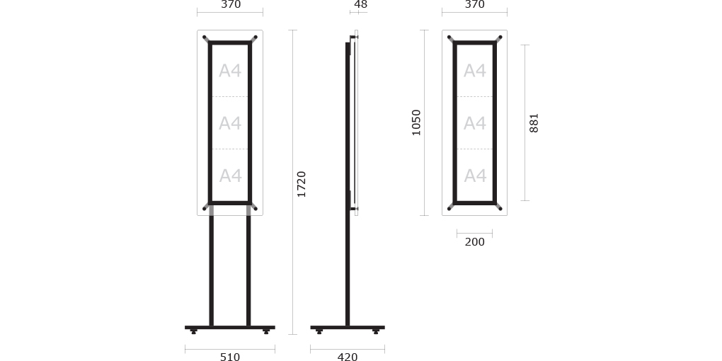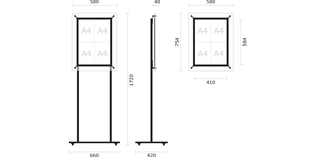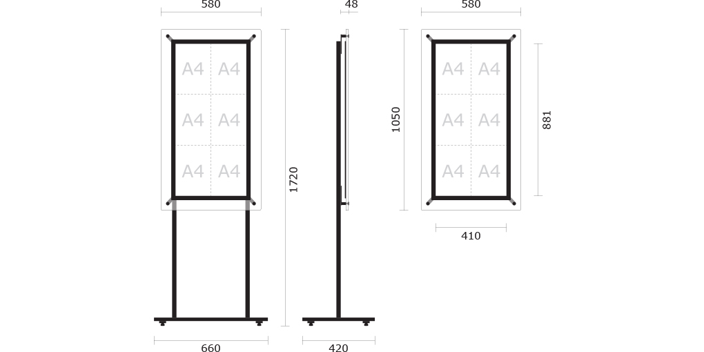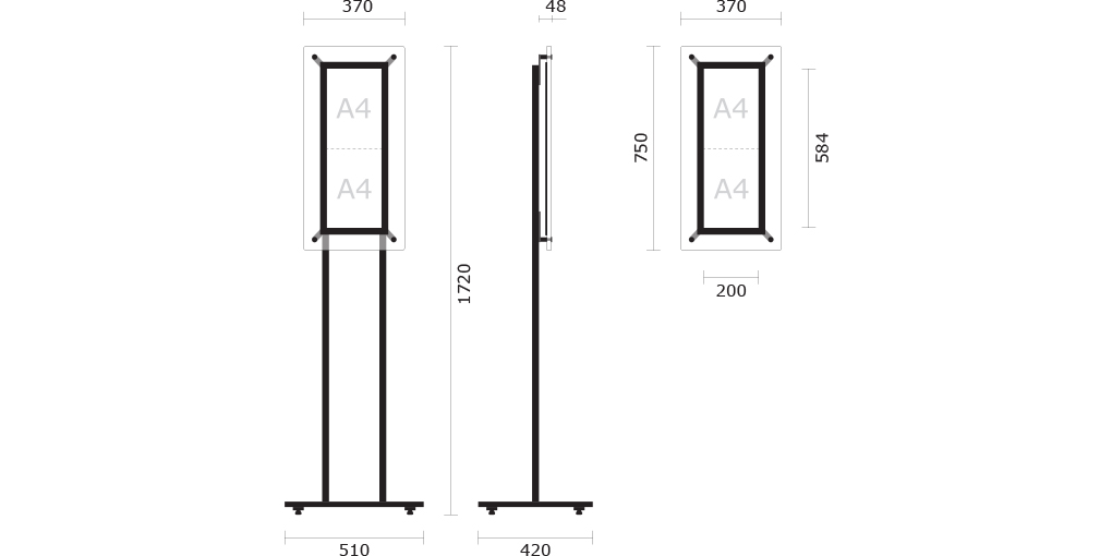 Nuestros expositores verticales son robustos y resistentes, con un acabado negro mate, y están disponibles con ruedas si quiere facilitar su desplazamiento.