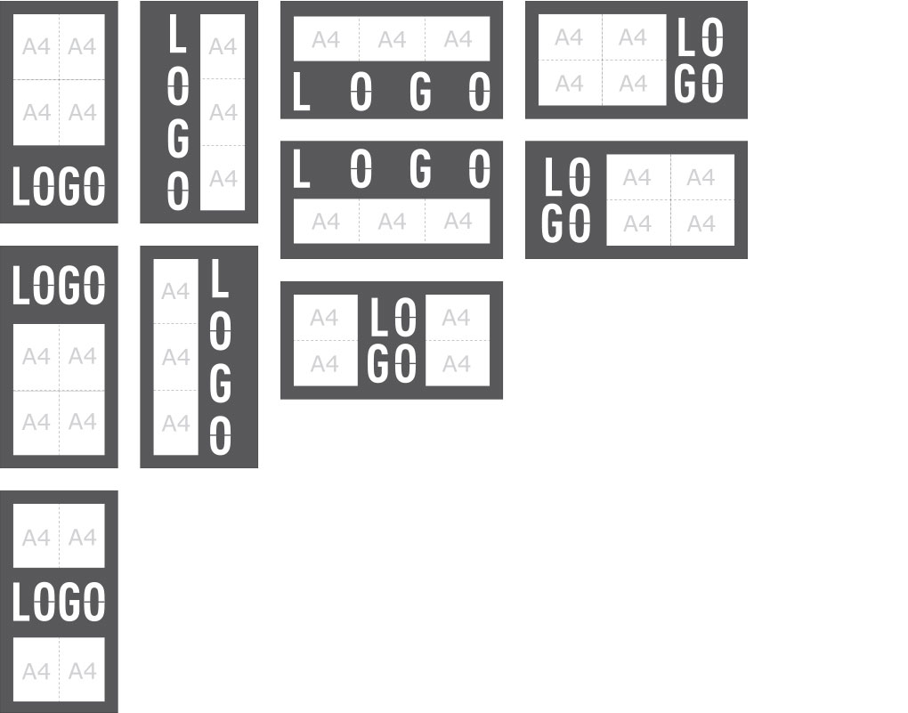 Podrá escoger entre 4 tamaños de expositor diferentes y varias plantillas para cada tamaño. Estas plantillas son sólo una guía o punto de partida, ya que podrás modificar o ajustar el diseño a tu gusto. Para obtener más información acerca de los tamaños y plantillas, consulte la pestaña "Tamaños".