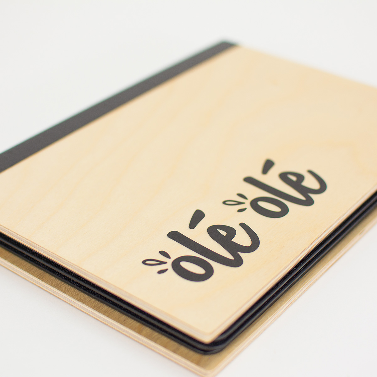 No recomendamos el uso de productos químicos fuertes como la lejía para limpiar estos menús de madera.