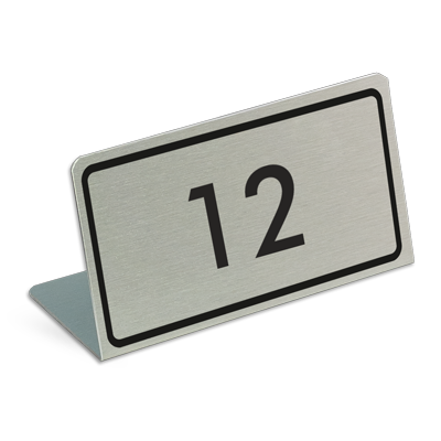 Información sobre la entregaLetreros de metal para reservados y números de mesa disponibles en tres colores. Rótulos de mesa impresos a todo color con su propio diseño, logotipos y texto por un costo adicional.