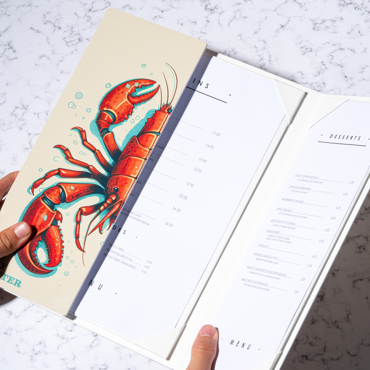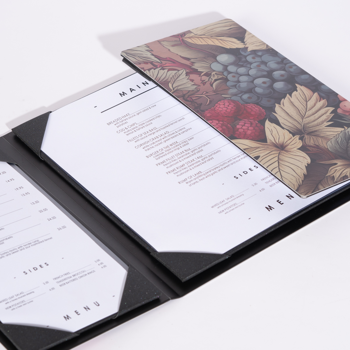 También puede darle un toque realmente creativo con la portada impresa, con un diseño a todo color que puede adaptarse a cualquier establecimiento, ya sea contemporáneo o más tradicional.
