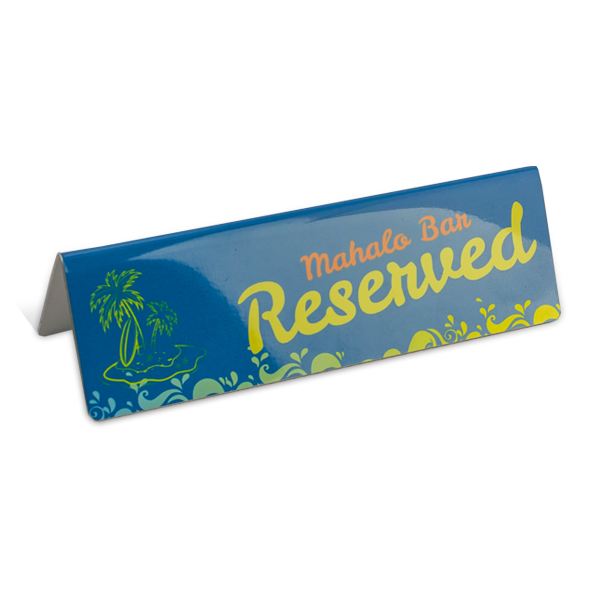 Letreros de aluminio de sobremesa personalizables disponibles en varios tamaños y 3 colores.