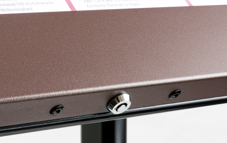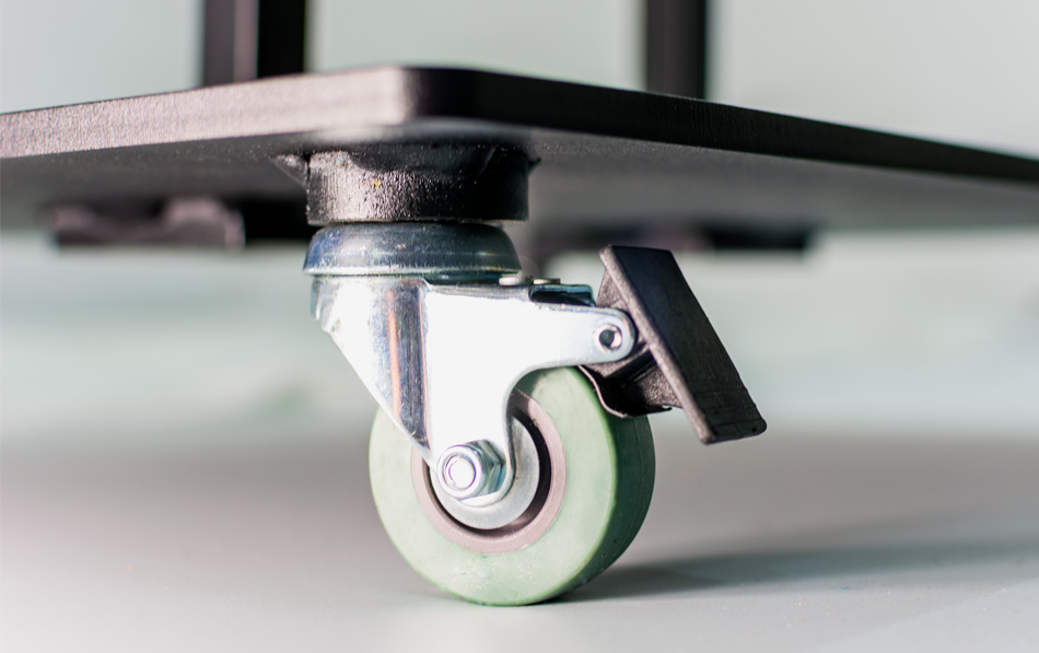 Puede optar por añadir ruedas a la base de su soporte. Esta opción le permitirá moverlo con gran facilidad. También puede bloquear y desbloquear las ruedas una vez que haya elegido la posición ideal para su expositor de menús
