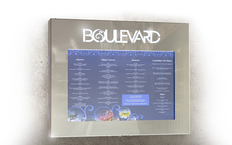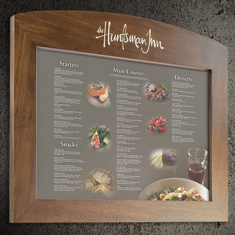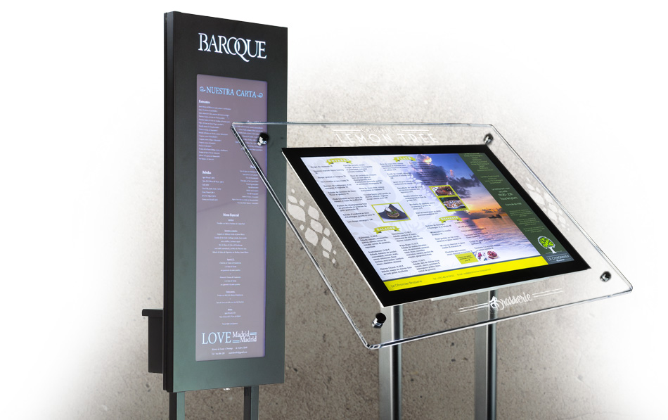 Nuestras vitrinas para menús están diseñadas para sorprender, llamar la atención y despertar el interés de sus clientes. Son la solución perfecta si desea mostrar su menú o cualquier información que quiera compartir con sus clientes. Disponibles en diferentes tamaños, colores y estilos, todas ellas pueden personalizarse con su propio logotipo o diseño. Encontrará la solución perfecta para cada estilo: ambiente rústico, elegante, sofisticado, contemporáneo, moderno o con una temática específica.