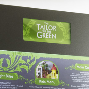 ¡Puedes elegir entre una base angular o vertical para tu expositor de menús personalizado! Descubre más sobre tamaños y colores aquí.