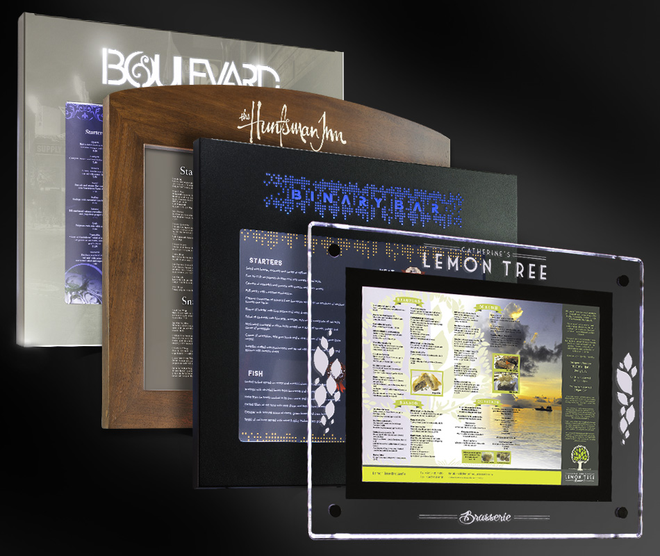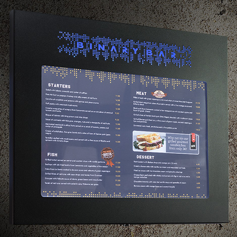 Todos nuestros expositores de menú están disponibles para montaje en pared, con o sin iluminación.