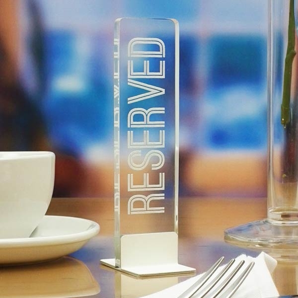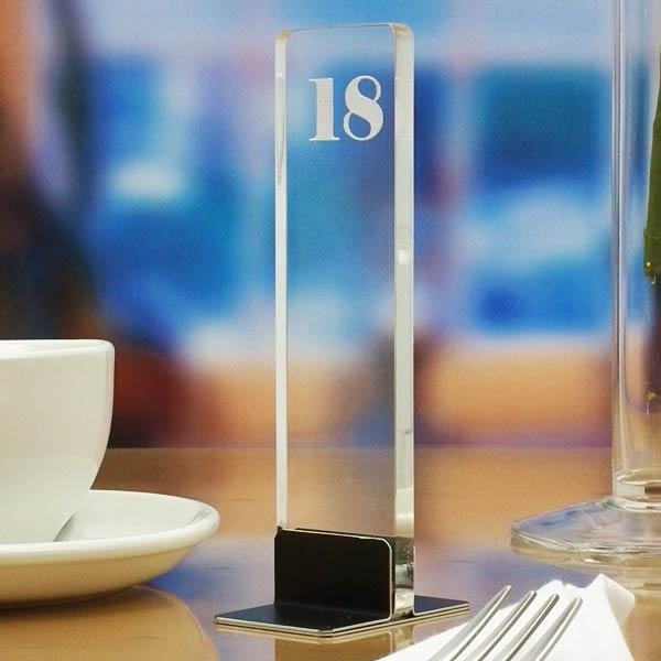 Número de mesa de material acrílico con base de alumnio grabado. Disponible en 7 colores disponibles.