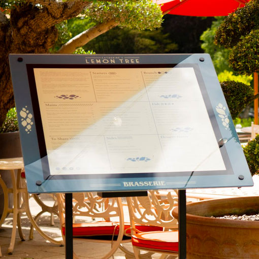 Nuestra página web tiene mucho más que ofrecer: carteles de mesa, pizarras para menús, vitrinas para menús, pizarras, presentadores de facturas, accesorios para restaurantes, bares y cafeterías, ¡y mucho más! Todos nuestros productos son personalizados, de alta calidad y se pueden adaptar a sus necesidades.