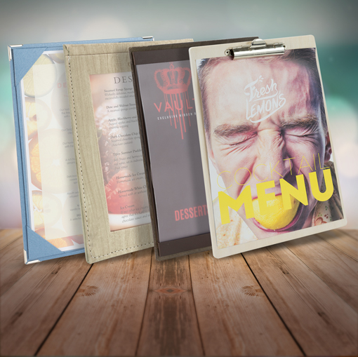Menús personalizados y a medida, porta cuentas, carteles, expositores y mucho más