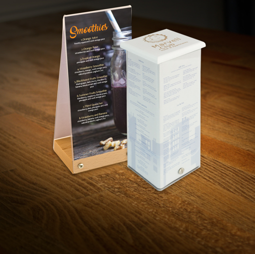 Nuestra página web tiene mucho más que ofrecer: carteles de mesa, pizarras para menús, vitrinas para menús, pizarras, presentadores de facturas, accesorios para restaurantes, bares y cafeterías, ¡y mucho más! Todos nuestros productos son personalizados, de alta calidad y se pueden adaptar a sus necesidades.