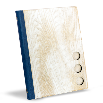 Nuestros nuevos portamenús de madera están basados en la línea superventas Madeira. Estas cartas para restaurante se pueden personalizar con perforaciones a medida, grabado o combinación de ambos. También puede elegir entre una gran variedad de perforaciones con formas estándar incluidas en el precio base.