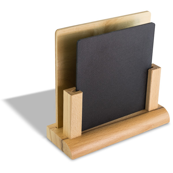 Información sobre la entregaEstos portamenús de mesa de madera son una forma fácil de añadir un toque atractivo a las mesas de su restaurante. Fabricados en madera con un diseño fuerte y robusto disponen de una ranura para introducir un tablero de pizarra cuadrado o una funda rígida de PVC de 1000 micrones, con cualquiera de las dos opciones puede mostrar los especiales, ofertas o menús del día de una forma moderna y eficaz.