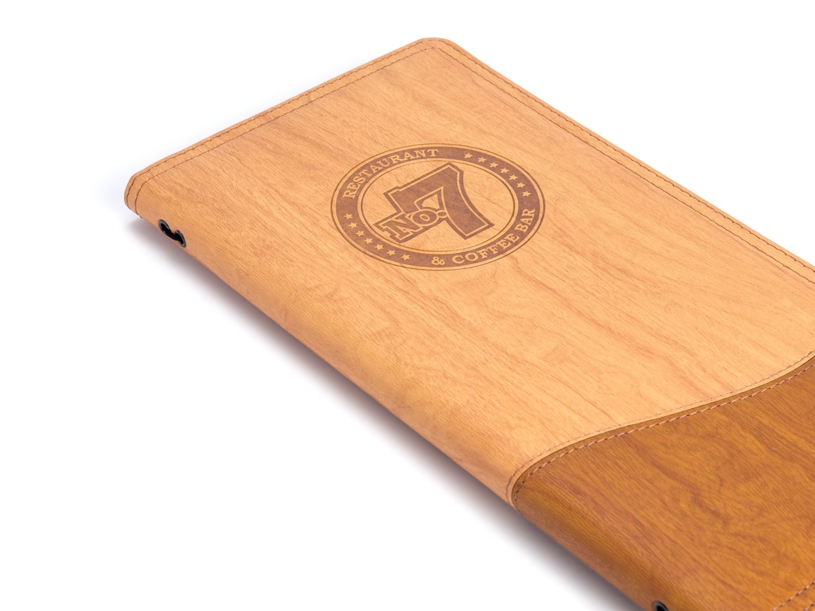 Portamenús fabricados combinando una doble textura con materia sintético efecto madera
