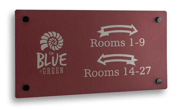 Personalice estos elegantes letreros de aluminio resistente a arañazos con su propio texto, logo o diseño mediante grabado que revela el color interior del metal.