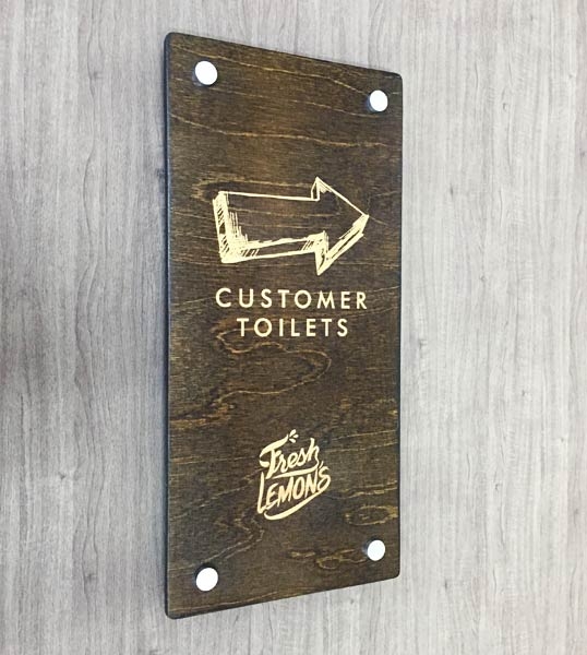 Letrero de madera, disponible en cuatro colores para uso tanto en interior como en exterior.