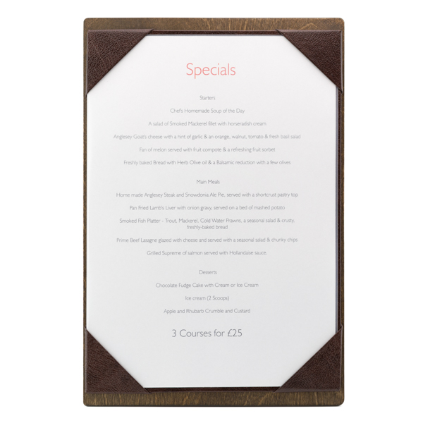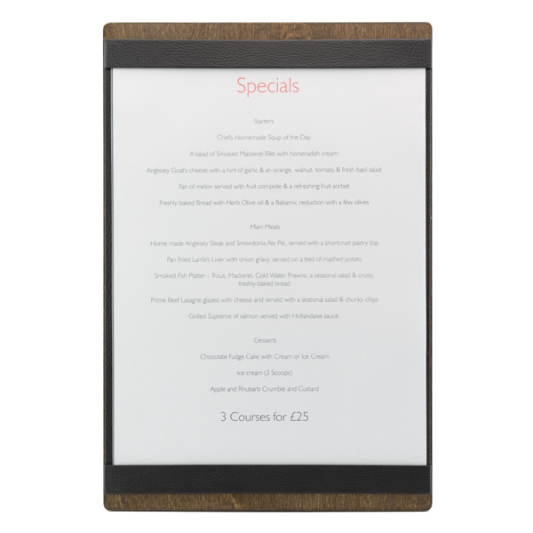 Tabla de menú en madera de tacto liso en varios colores