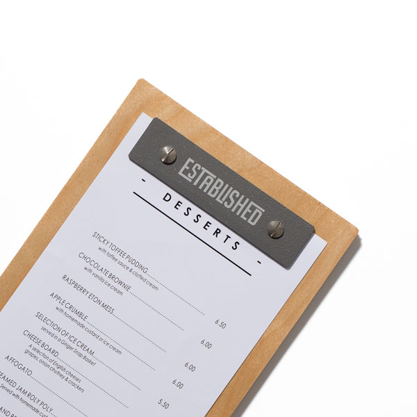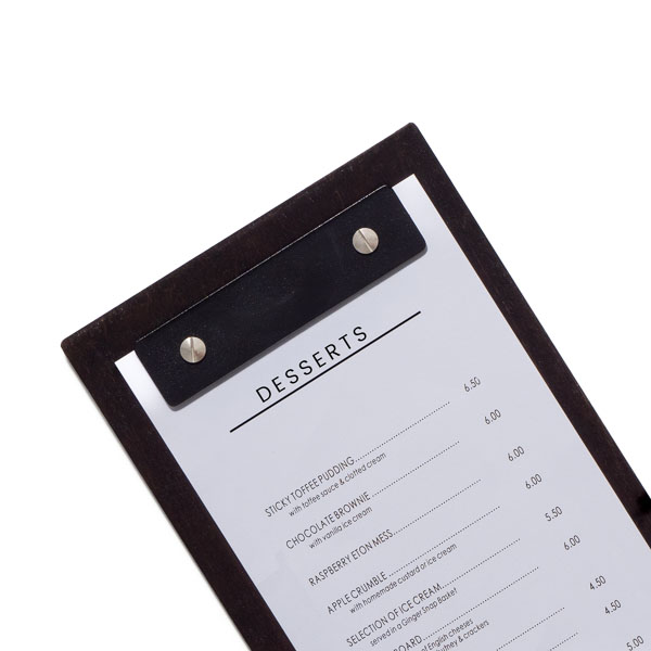 Fija fácilmente tus menús impresos mediante tornillos disponibles en 3 colores