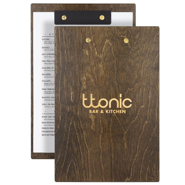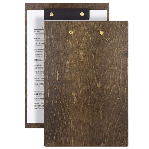 - Fija fácilmente tus menús impresos mediante tornillos disponibles en 3 colores, dorado, plateado o negro.